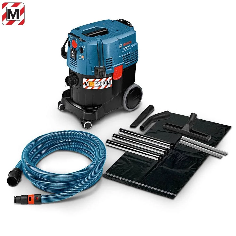 Approved for dust category “M” according to EU Norm, Bosch 35 Litre Wet/Dry Vaccum GAS 35 M AFC’s powerful 1380-watt suction turbine delivers up to 254 mbar vacuum pressure for perfect dust extraction in wet and dry operation. The automatic filter cleaning (AFC) ensures constant and easily adjustable suction power for continuous work progress by autommatically cleaning the filter every 15 seconds.