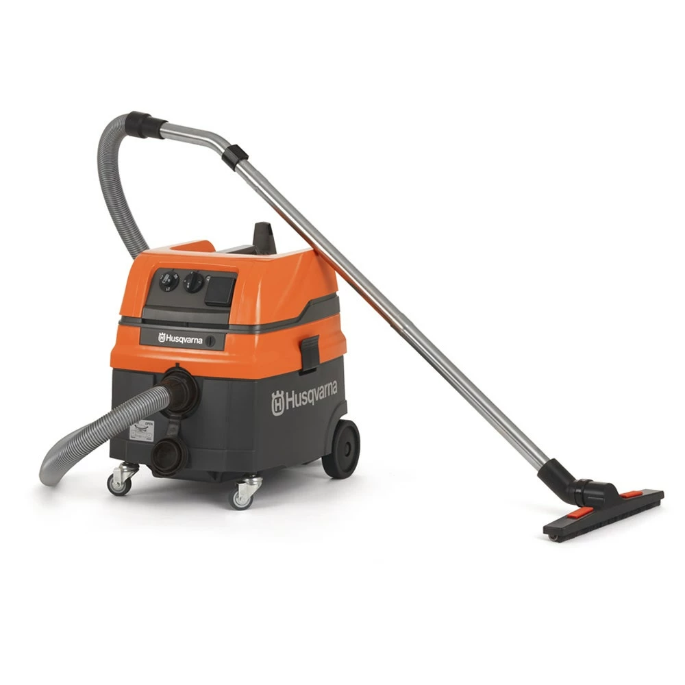 Husqvarna S 11 is a compact and portable H-classified wet and dry industrial vacuum cleaner for general cleaning and handheld tools. It is equipped with HEPA-filters and offers automatic filter cleaning by shaking the filter during operation for a continuous air-flow. This vacuum unit is very easy to transport and handle thanks to its compact design, low weight and convenient carry handle.