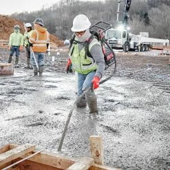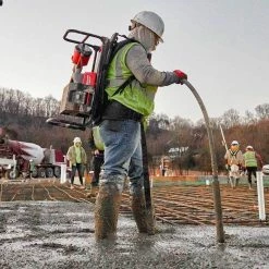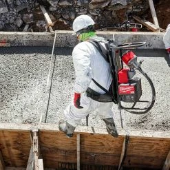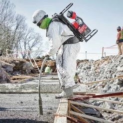 The MX FUEL™ Backpack Concrete Vibrator provides consistent starts and reliable pours with maximum power for optimal consolidation, the power to push up to 50mm (2”) heads and 4.2m (14′) shafts, no petrol headaches, and consolidating up to 52mÂł/348m2 with a 38mm (1-1/2”) head and 2.1m (7’) shaft on one MX FUEL™ REDLITHIUM™ XC406 battery pack.